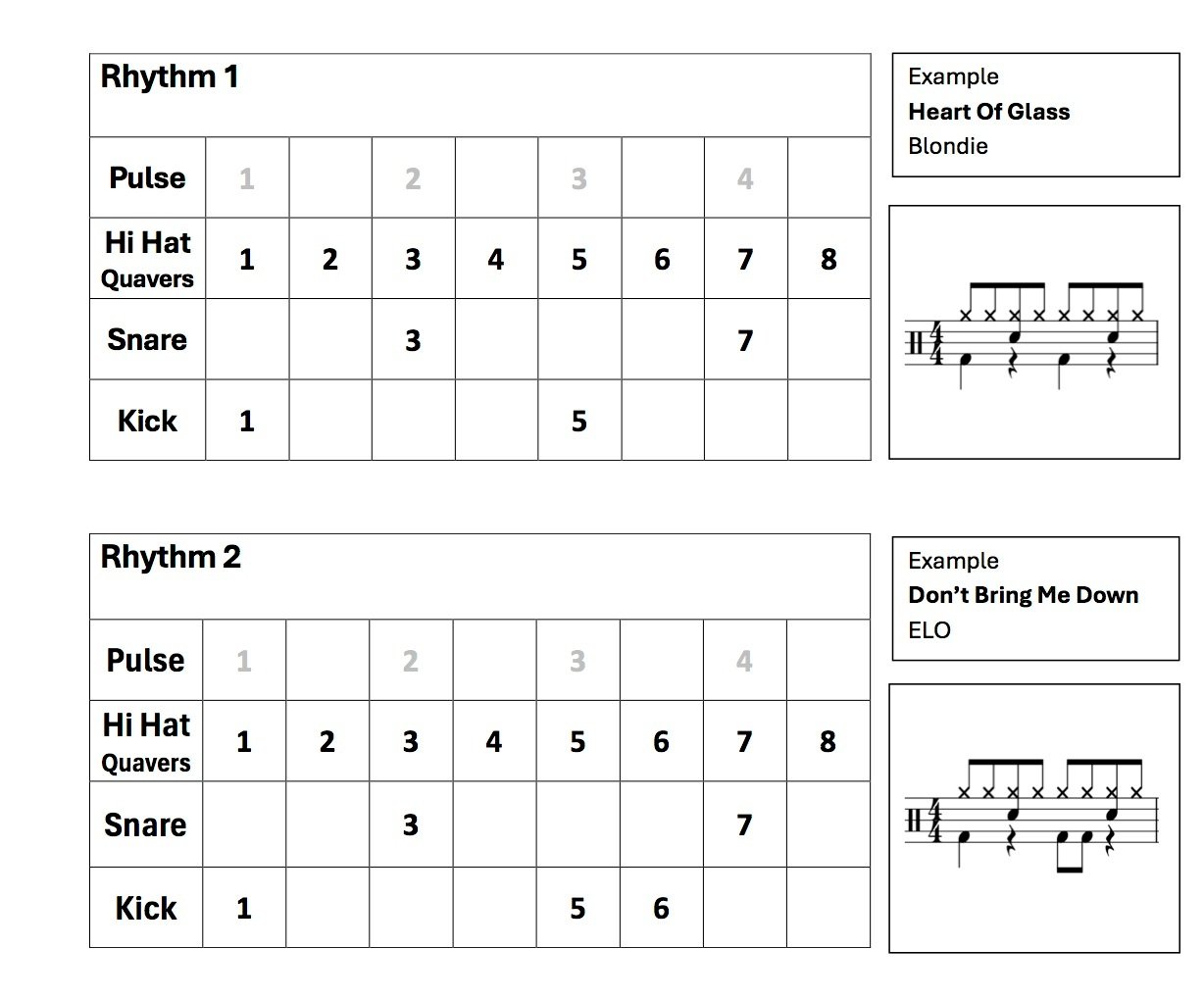Drums By Numbers - a collection of drum rhythms using numbers alongside music notation. During my teaching practice I have found these to be very accessible for beginner pupils as well as those with SEND conditions. Students begin with the number patterns and most eventually make the correlation with the notation and can work with either.