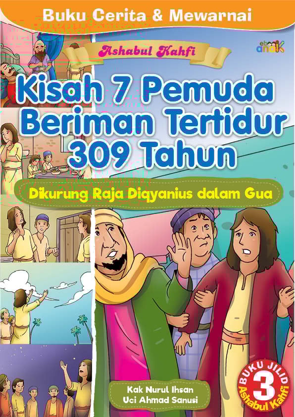Buku Cerita dan Mewarnai Asmaul Husna: Kisah 7 Pemuda Beriman Tertidur 309 Tahun: Dikurung Raja Diqyanius dalam Gua (Jilid 3)