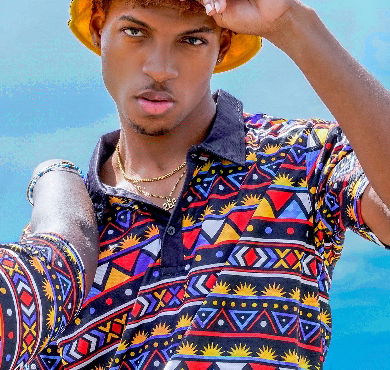 Show dem wey ya from! The Rep D’Flag Polo reimagines the national flag in an all-over polyester print, paired with a traditional collar and button placket. Fade-resistant and wrinkle-free for easy wear.