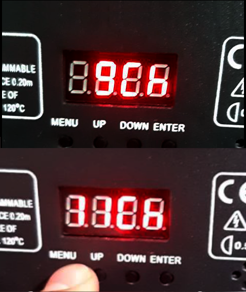 * En el modo de 11CH Verifique que coincidan estos canales: 8 Dimmer, 5 en el valor 72 = Color Celeste, 6 en el valor 26 = Gobo de Burbujas (ver cuarta foto).