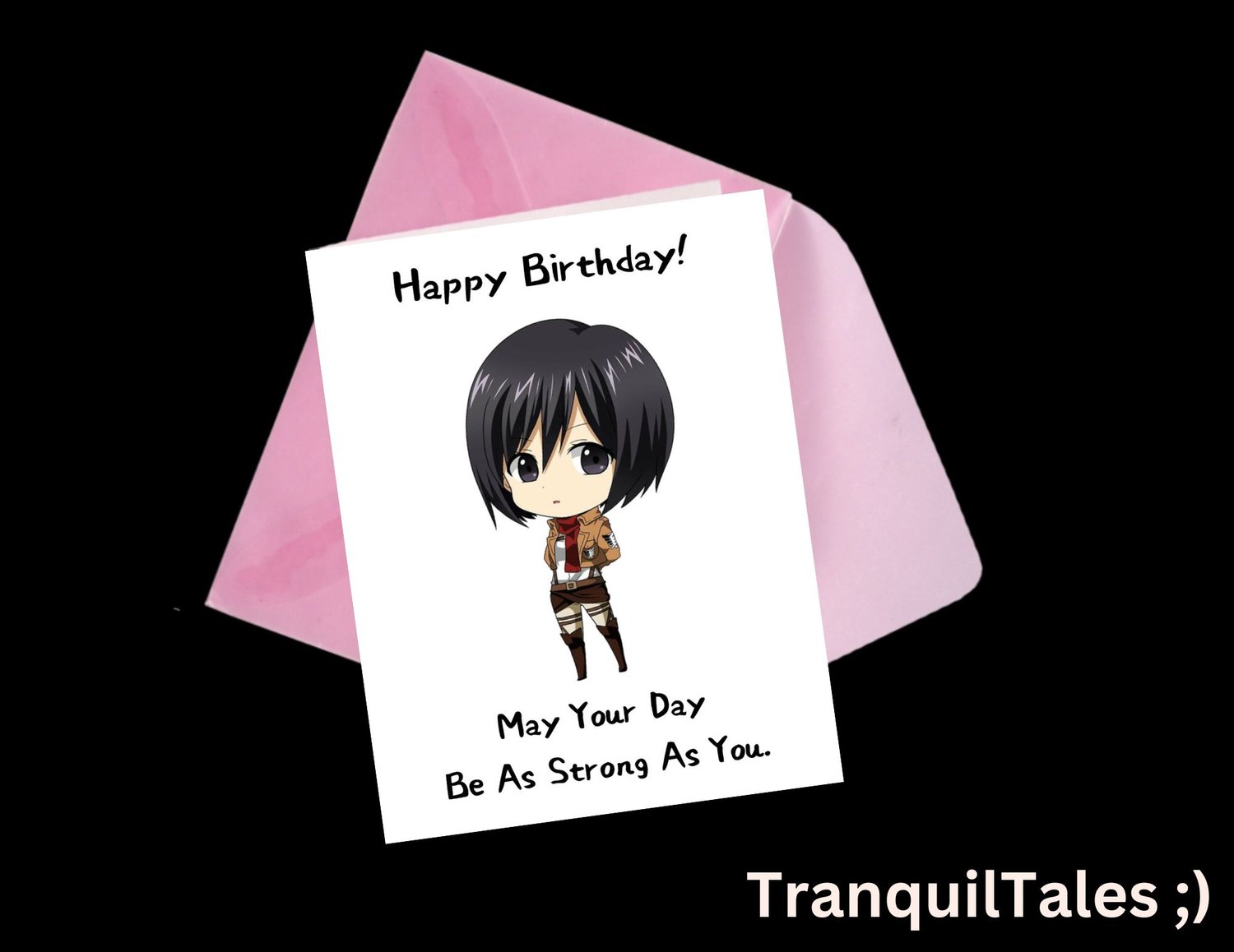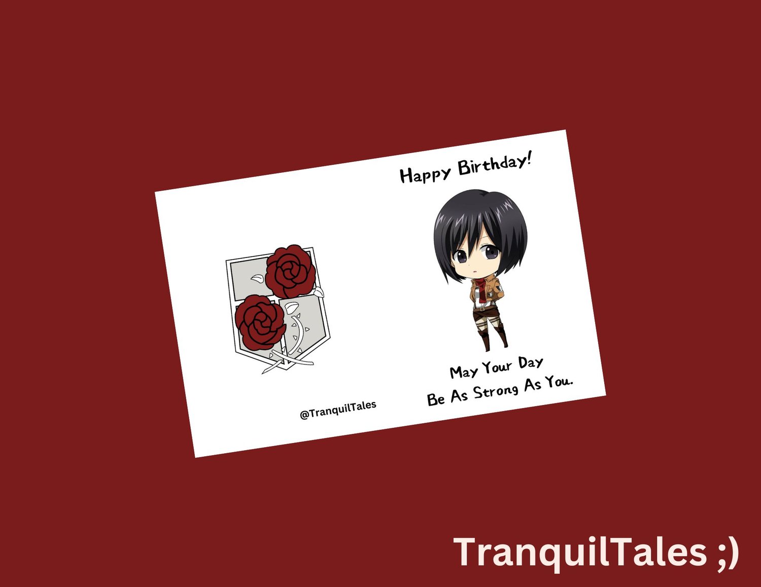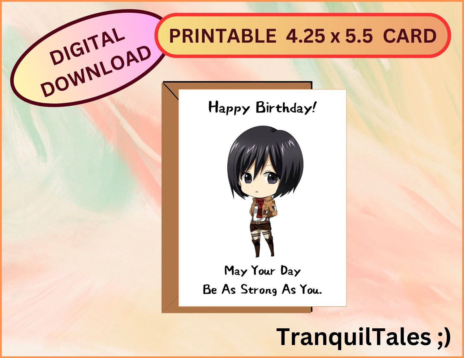 BIRTHDAY CARD - ATTACK ON TITAN - 4.25" x 5.5" PDF - PRINTABLE GREETING - DIGITAL DOWNLOAD - MIKASA ACKERMAN