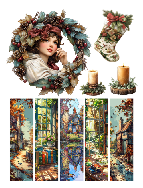 This beautiful Rustic Cottage Christmas Ephemera to Cut and Collage Book features gorgeous elements including Christmas trees, barns, sheep, cows, chickens and roosters, warm fireplaces, snowy scenes, landscapes, acorns and pinecones, snowmen, wreaths, people, ladies, food and dining tables, warm and cozy chairs, jars, houses, tags, stockings, trains, patterns, garlands, Santa Claus, highland cows, trucks, reindeer, sleighs, owls, signage, beds, bows, carol singers and more. Decorate your planner with these lovely ephemera pieces, it's all the rage!