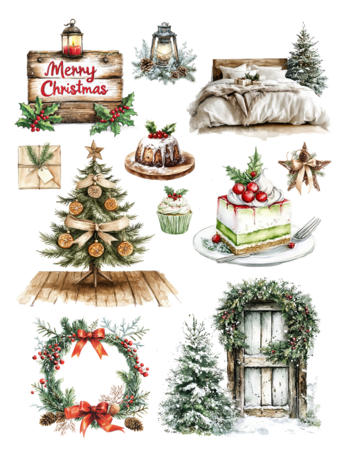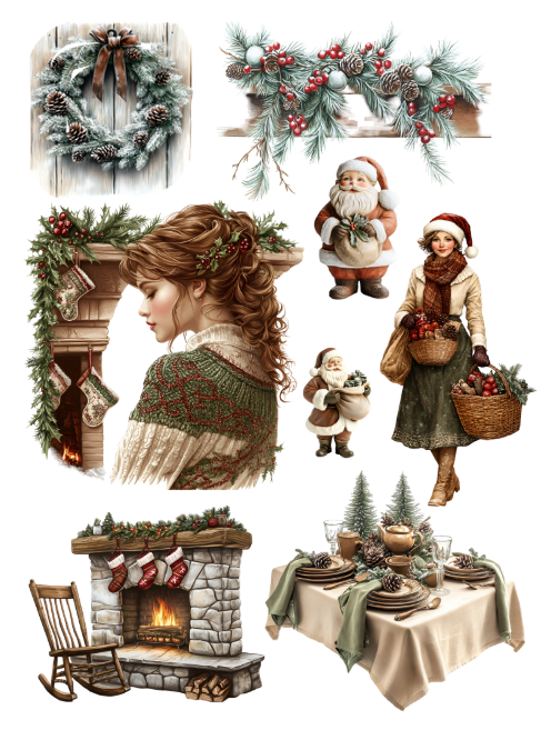 RUSTIC COTTAGE CHRISTMAS EPHEMERA TO CUT AND COLLAGE BOOK