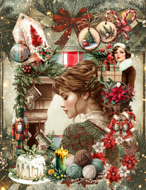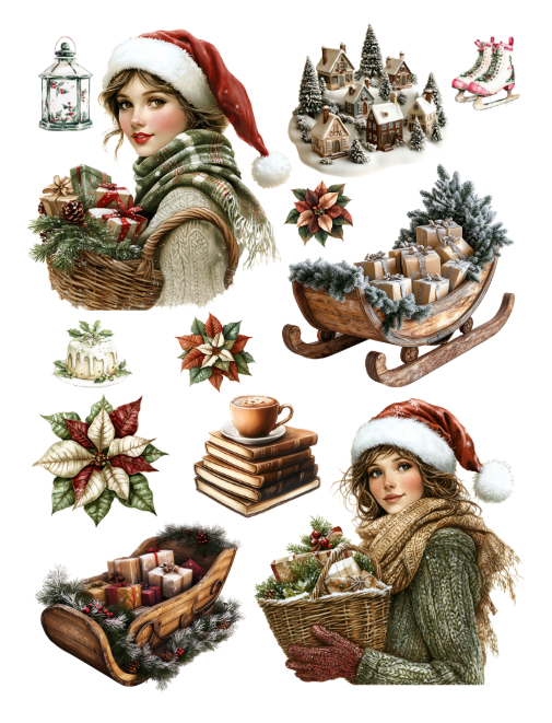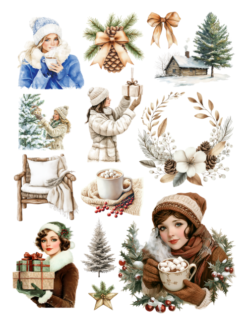 This Rustic Cottage Christmas Ephemera to Cut and Collage Book features: