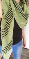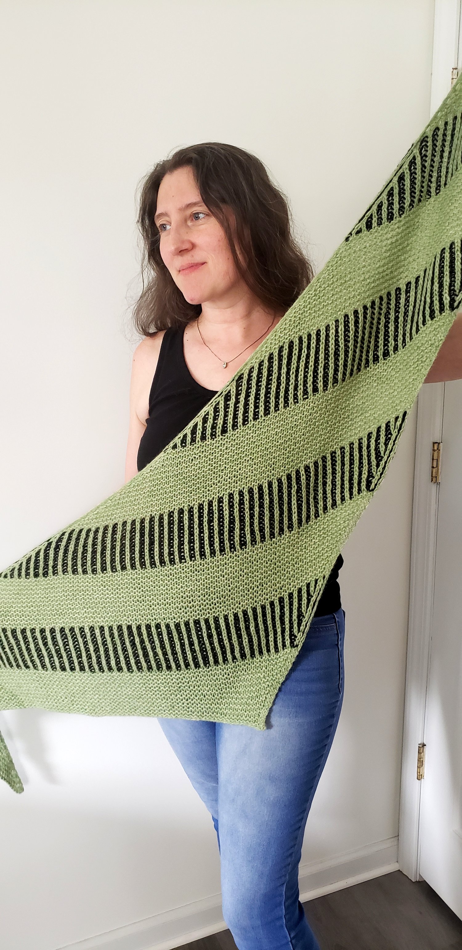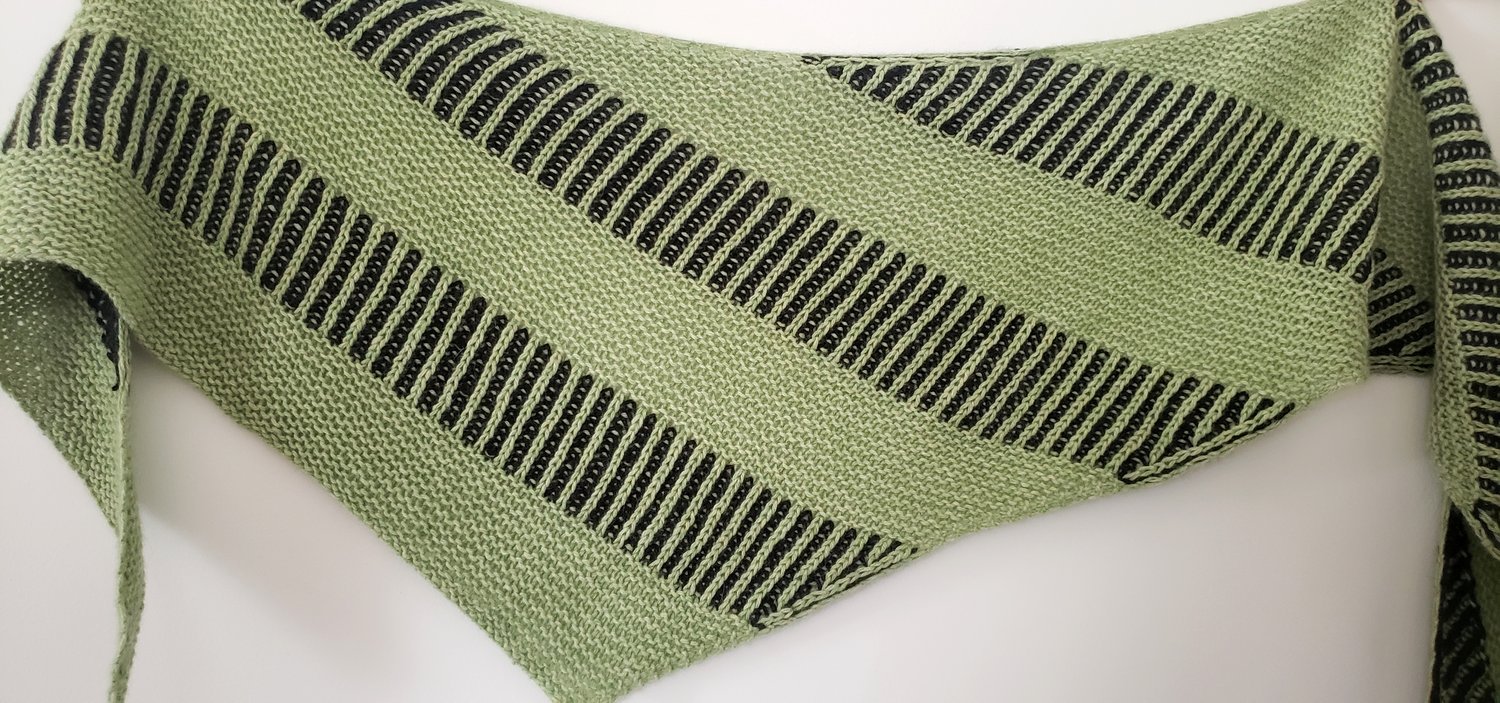 Mentha is a long, tapered, asymmetrical triangle shawl. Sections of soothing garter stitch alternate with sections of enjoyable 2 color brioche stitch. Because the knitting begins at one tip, it is easy to customize the size, simply stop knitting when it is the size you want and bind off! Mentha is a great introduction to 2 color brioche, using only basic brioche stitches plus one type of increase and one type of decrease. The yarn I chose for my sample, The Lamb & Kid Tod, is an amazing blend of yak and cashmere, soft and lovely, and comes in an abundance of beautiful hues for endless color pairing fun!