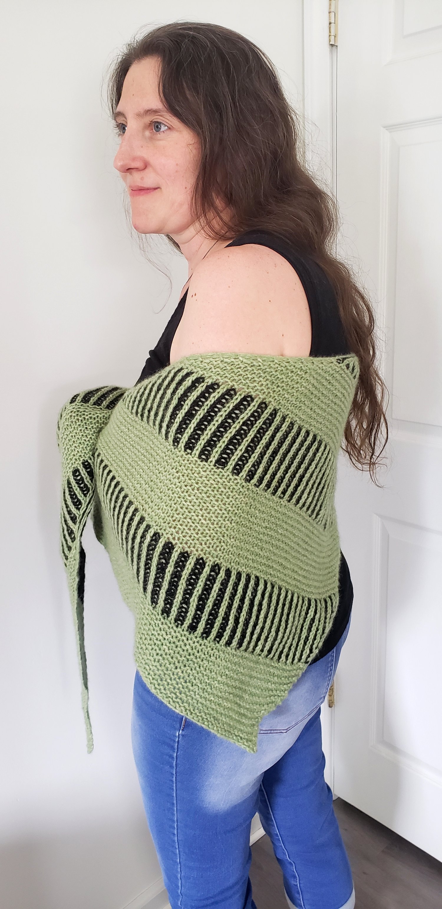 Suggested Yarn: The Lamb & Kid Tod (65% Yak / 35% Cashmere, 150 yd / 50 g), sample used 3 skeins in colorway Pistachio (MC) and 1 skein in colorway Crow (CC)