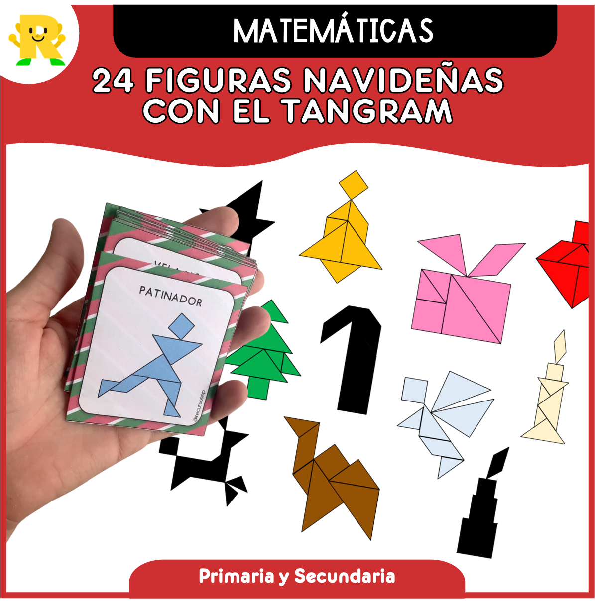 En esta entrada os comparto un tangram navideño para imprimir y recortar, junto con un conjunto de 48 tarjetas con figuras para jugar. Este recurso incluye: