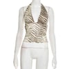 Vintage style Y2K zebra prints crop mesh halter tank top vest