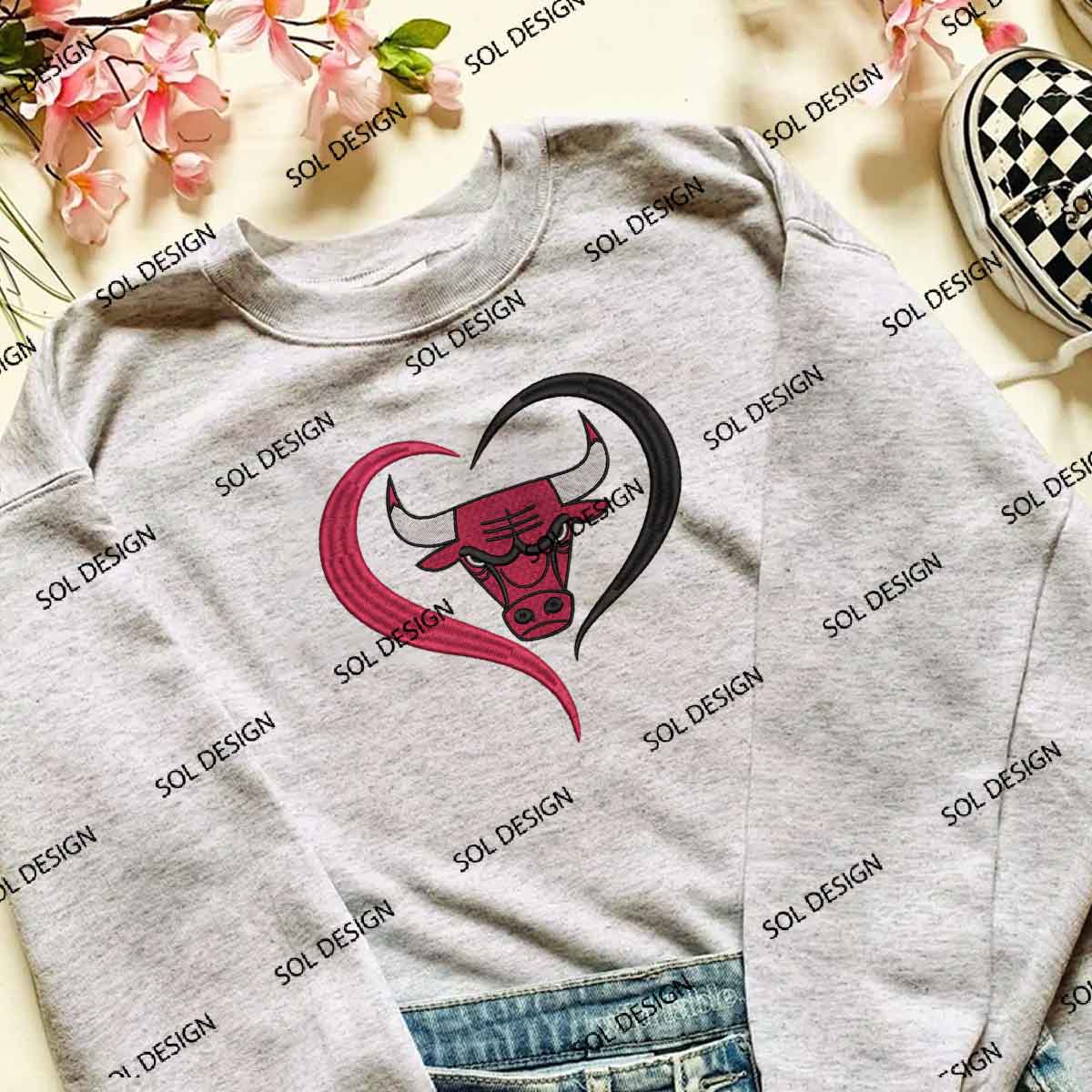 Chicago Bulls Team Heart Logo Embroidery Designs, Chicago Bulls Basketball Team Embroidery Files, NBA Bulls Team Logo Embroidery, NBA Basketball Team Machine Embroidery Design, 3 sizes, Digital Download