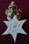This beautiful snowflake is worked in the round, but if you find working circularly on only a few stitches difficult, the pattern gives instructions for working back and forth until there are more stitches available before working in the round.