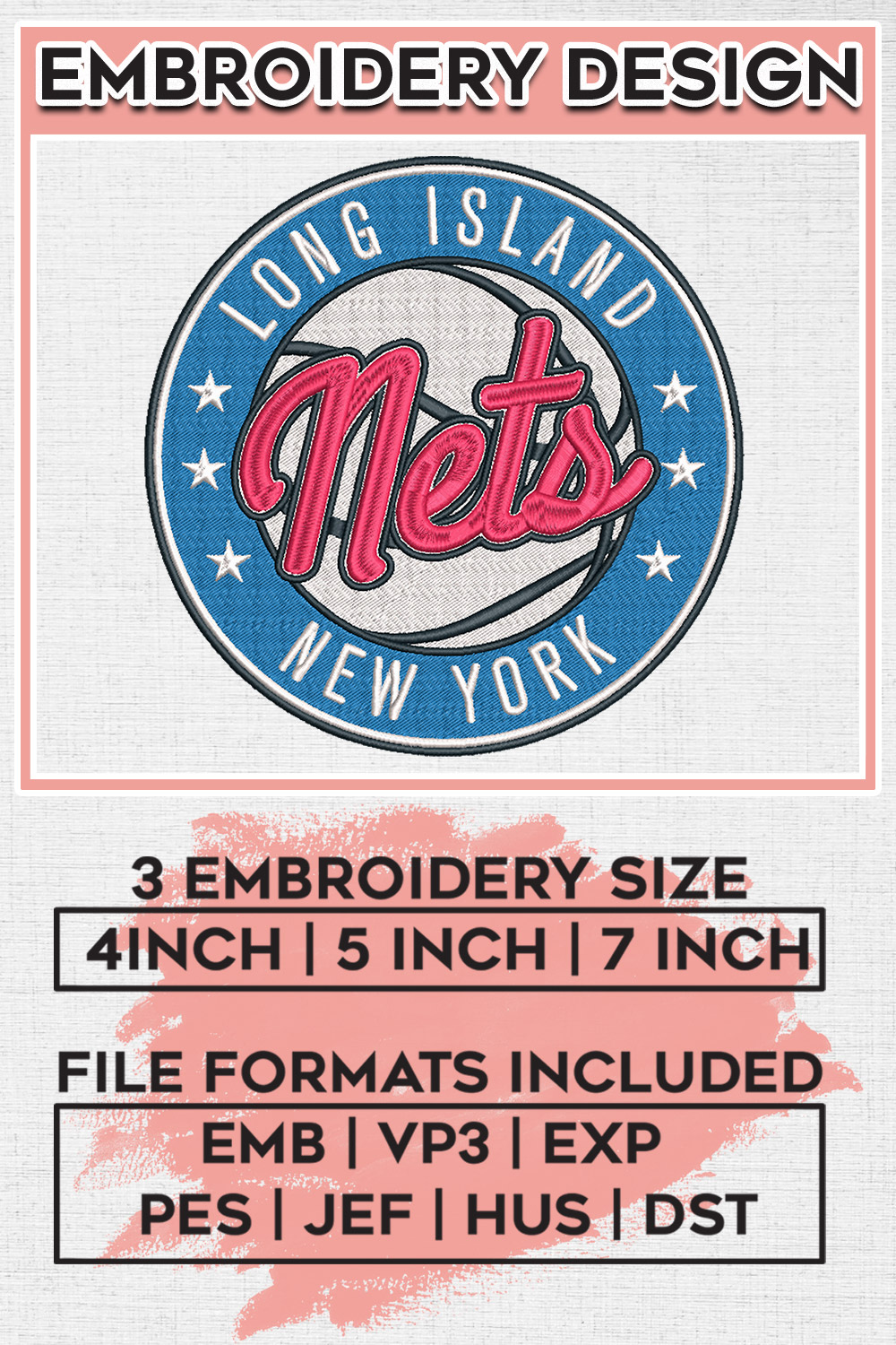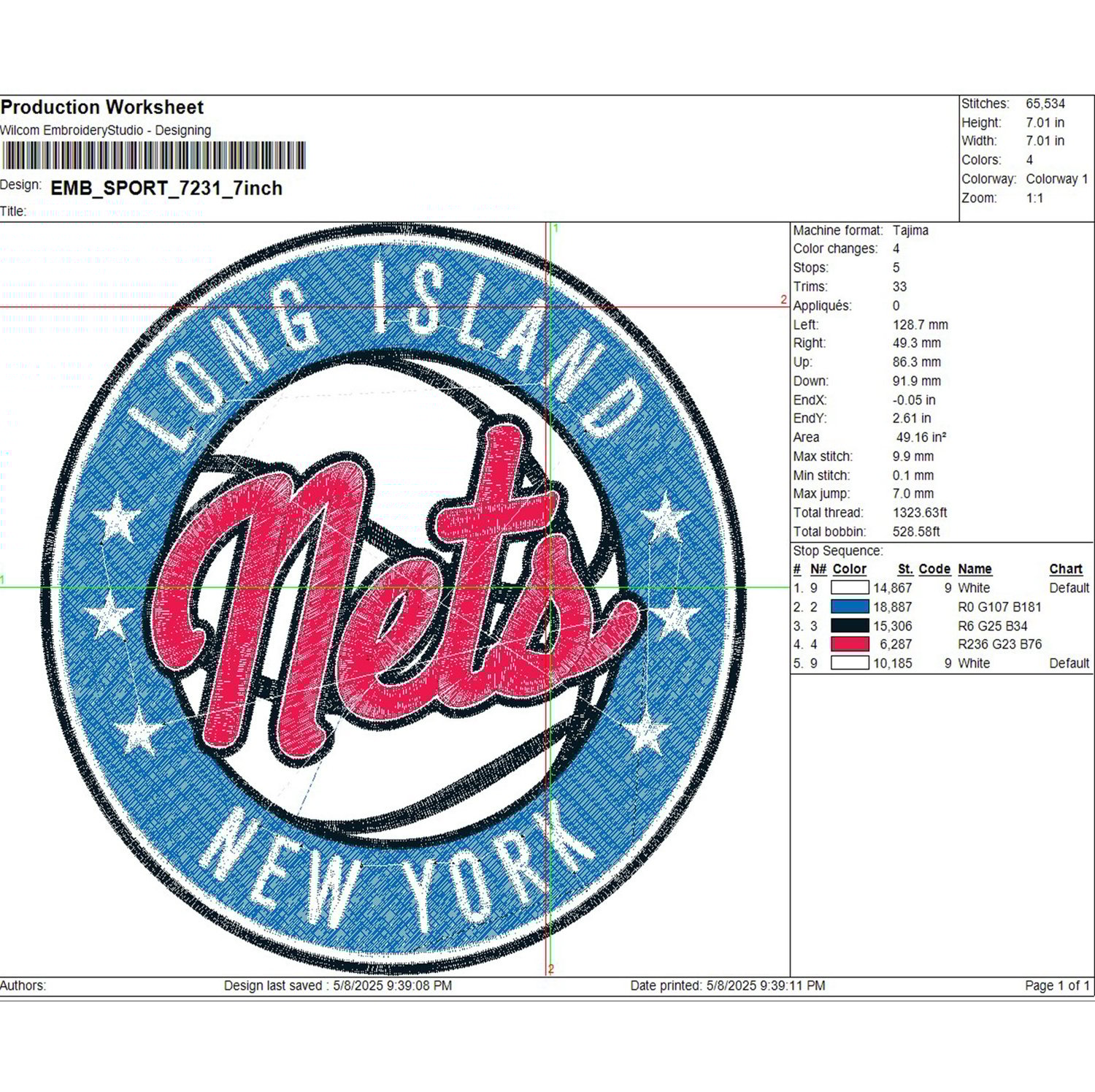 NBA G League Long Island Nets Team Round Logo Embroidery Designs, NBA G League Long Island Nets Logo Machine Embroidery Files, NBA G League Basketball Team Logo embroidery designs, NBA G League Nets, Digital Download