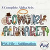 This is our Cowgirl Doodle Alphabet Bundle Digital Design. You will receive 8 complete alphabets and 12 accessories. All are saved as individual files. These are great for sublimation and creating t-shirts, mugs, blankets and so much more. Use the alphas to create names and sayings as shown in the example graphic.