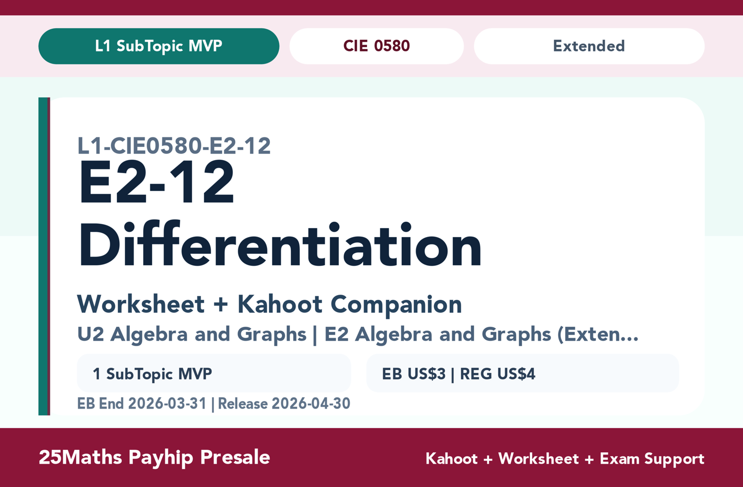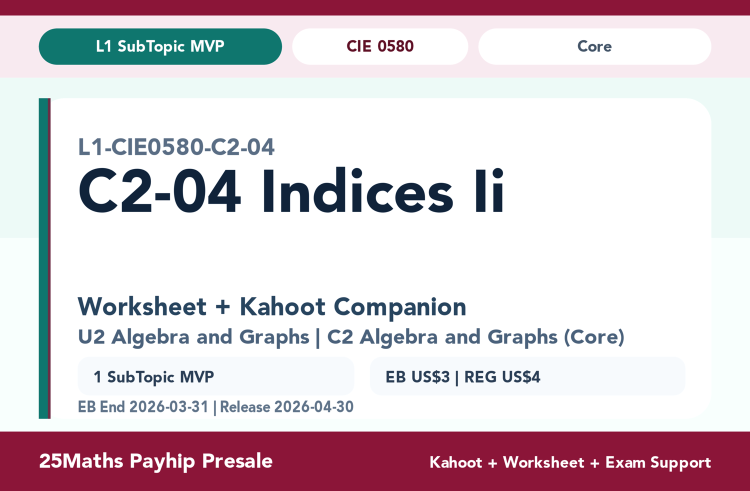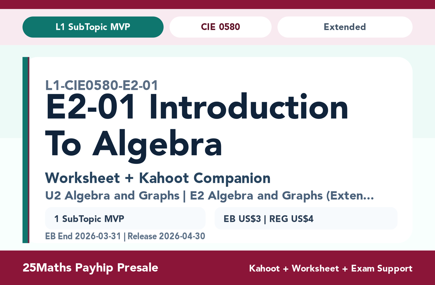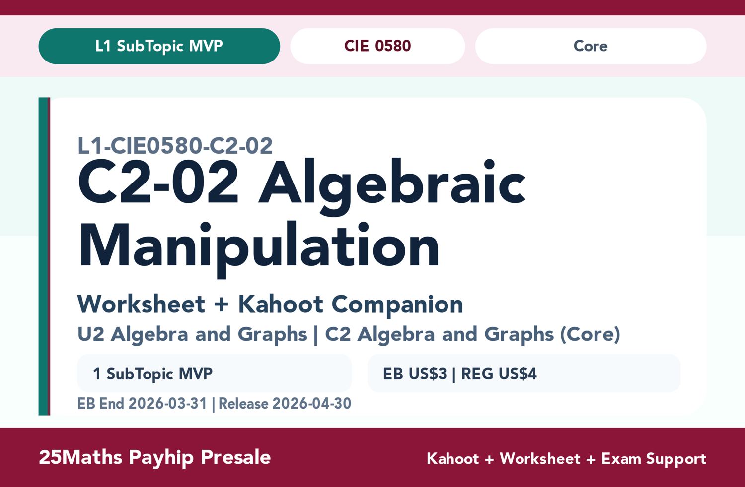 Master Algebraic Manipulation for your CIE 0580 Extended Exam with our Interactive Practice Suite! Whether you're a student securing your advanced marks or a teacher looking for engaging classroom resources, this worksheet and Kahoot combo is built directly from the official CIE syllabus.