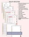 The pages are designed to have a clean modern look and to be as functional as possible. With thousands of clickable hyperlinks for effortless navigation, and several lifestyle planning pages, this premium digital planner is the ultimate productivity and organizational tool.