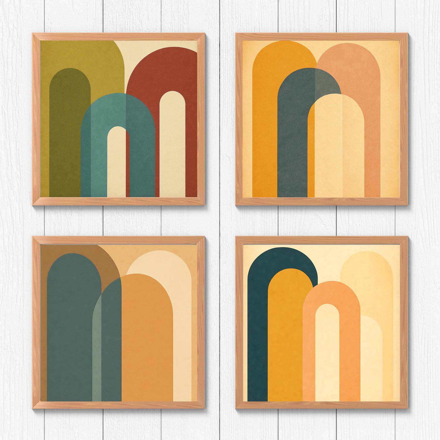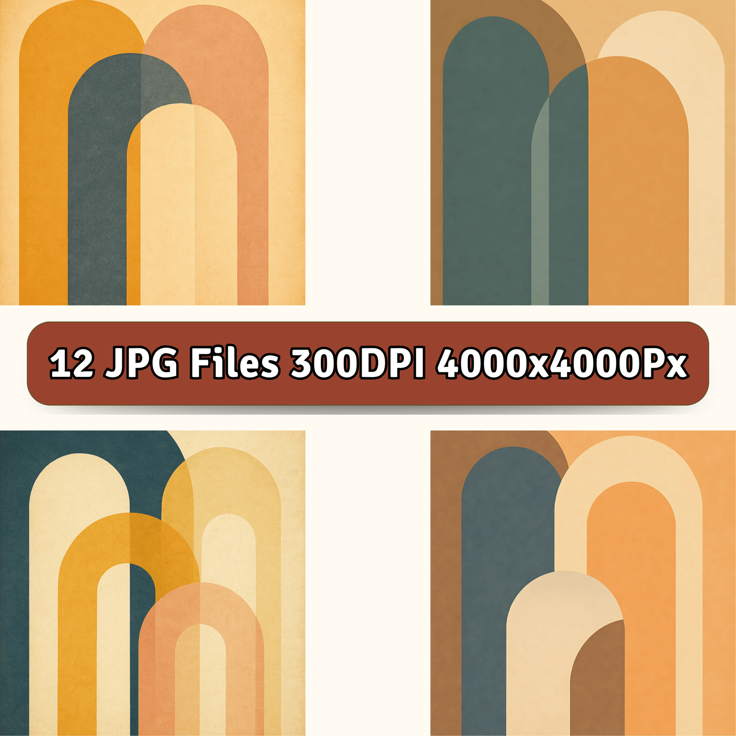 Elevate your creative projects with this stylish pack of retro abstract background designs. Inspired by mid-century modern aesthetics, this collection features bold arch shapes, vintage color palettes, and warm textured finishes. These high-resolution JPG files are ideal for creators looking to add a trendy retro vibe to their visual content.