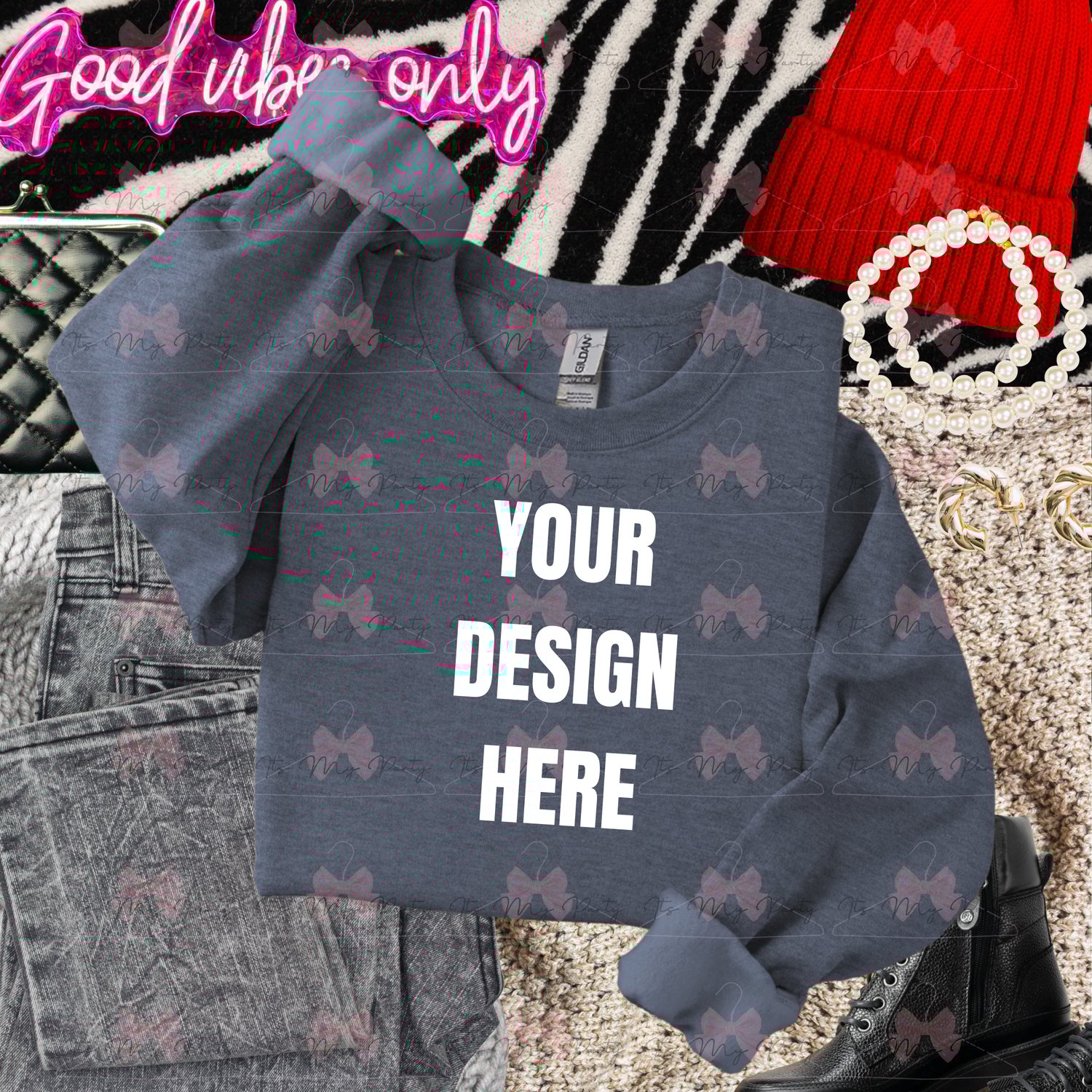dark grey crew neck good vibes zebra MOCKUP