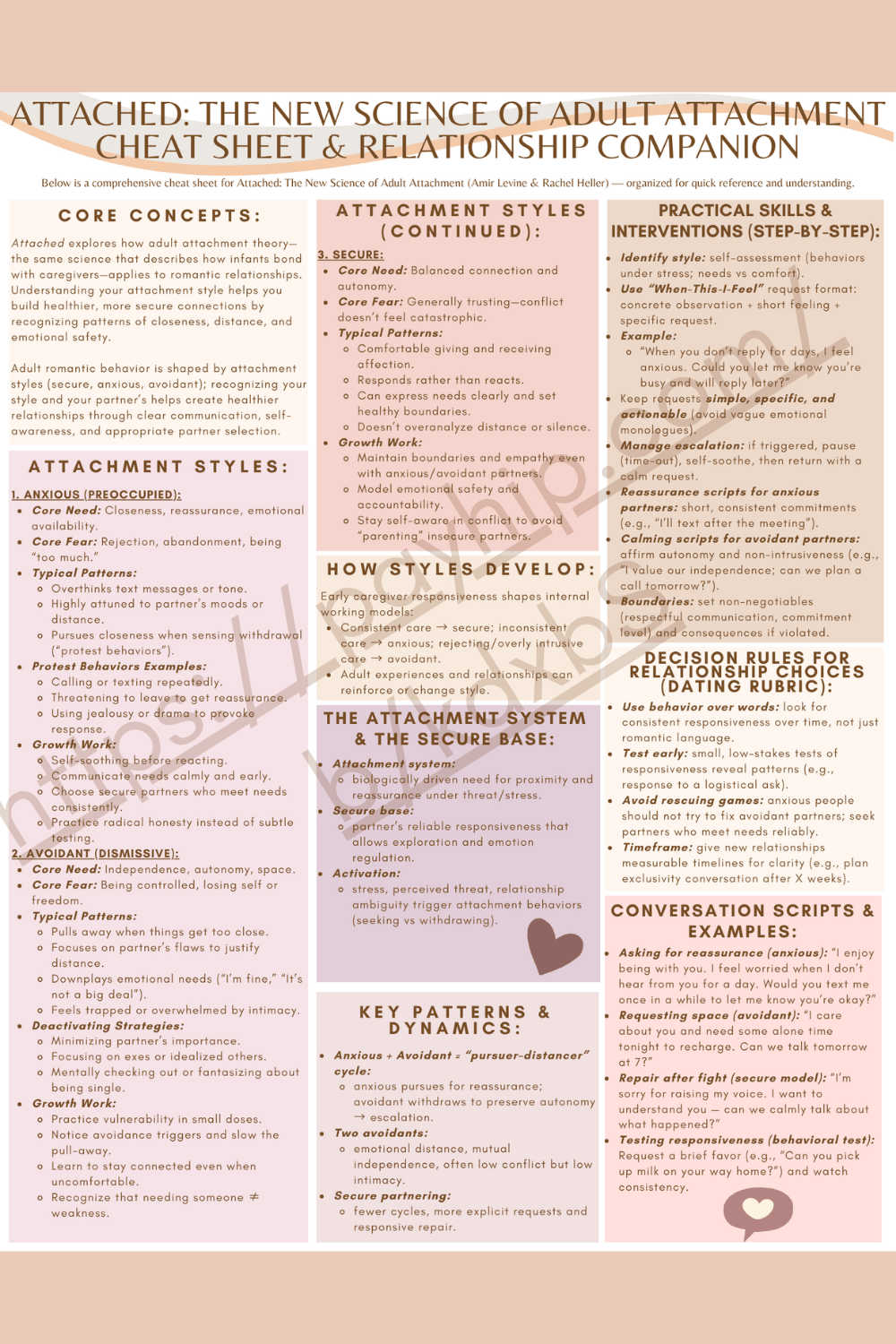 Based on Attached by Dr. Amir Levine and Rachel Heller, this comprehensive worksheet helps individuals and couples identify their attachment style—anxious, avoidant, or secure—and learn how to cultivate safety, connection, and trust in relationships.