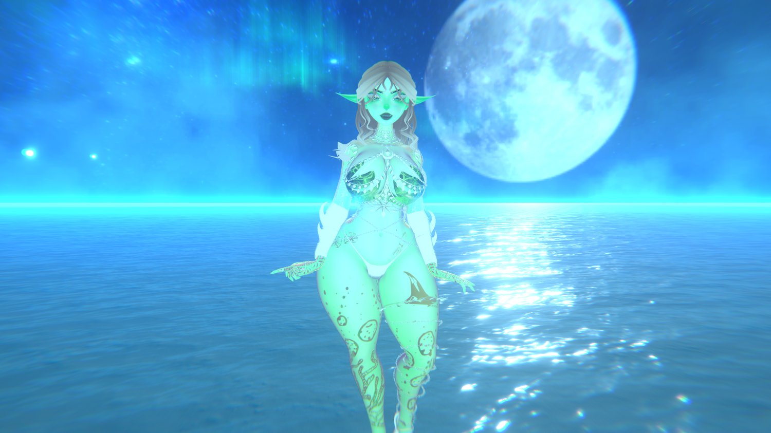 BodysuitGloves FishnetsStarfishHeadFins SirenTopGauntlets chaintopshortsarmwire dress chaintop2 pearls skirt shortshag longwaves longcurls sirencurls twists legchain heels crown facechian necklace eel