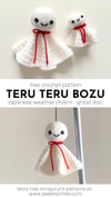 Teru Teru Bozu is a quick and easy no-sew crochet project that is crocheted seamlessly in one piece. The PDF pattern comes with two different sizes to make a Big Teru (5 inches tall) and a Small Teru (3 inches tall). The small Teru can be turned into a keychain given its size.