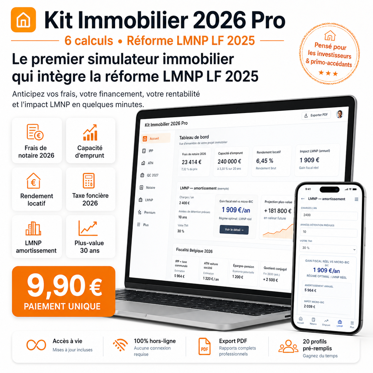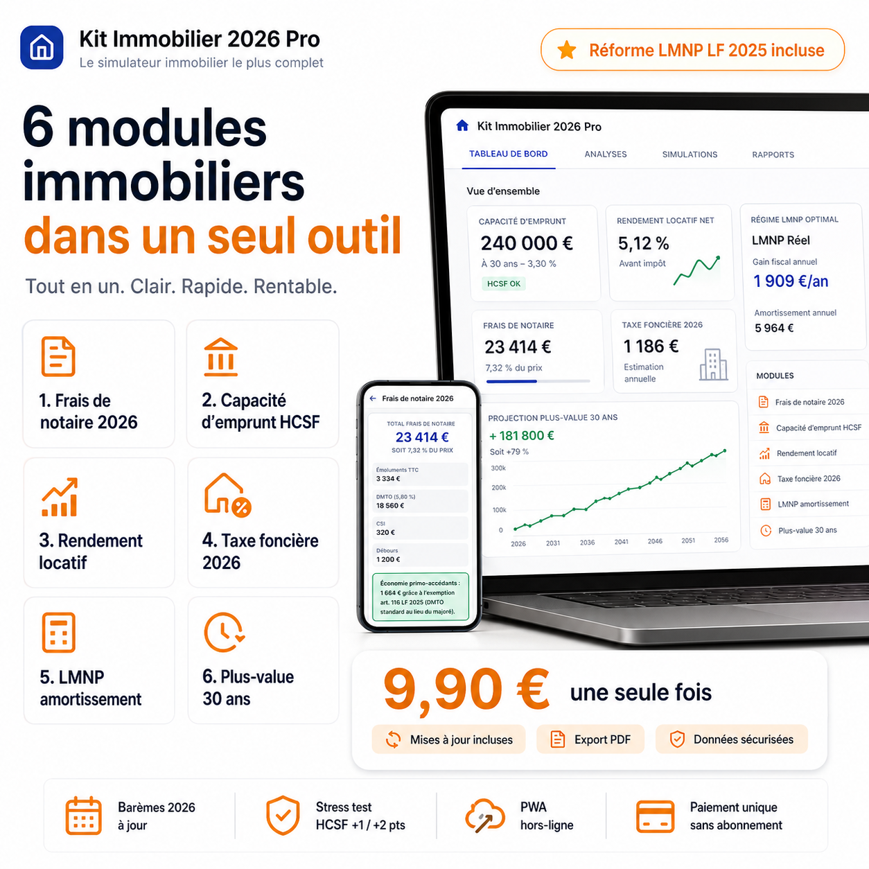 Kit Immobilier 2026 Pro — 6 calculs + Réforme LMNP LF 2025