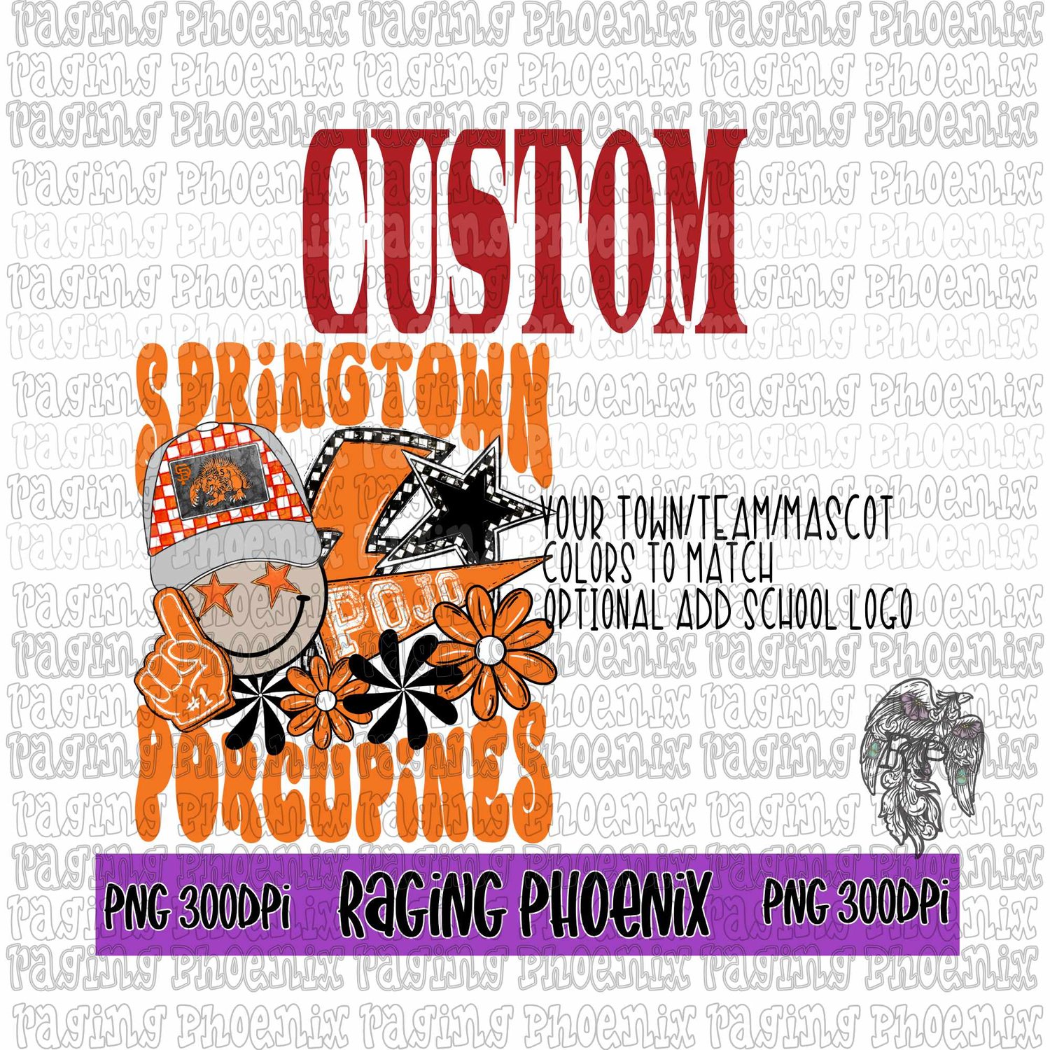 For this custom design I will need the Town, Mascot, colors and if you want your school logo please leave city and state. Otherwise a generic mascot will be used.