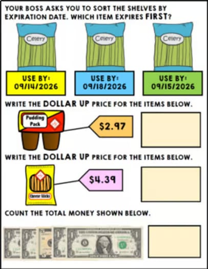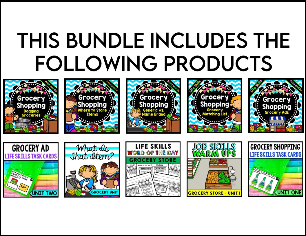 Life Skills - Grocery Shopping - Reading - Writing - Math BUNDLE