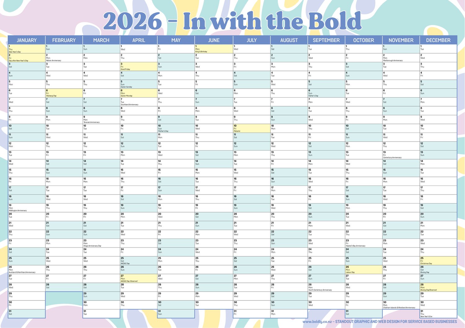 Weekends and New Zealand public holidays are highlighted, and you have the choice to download with or without school holidays.