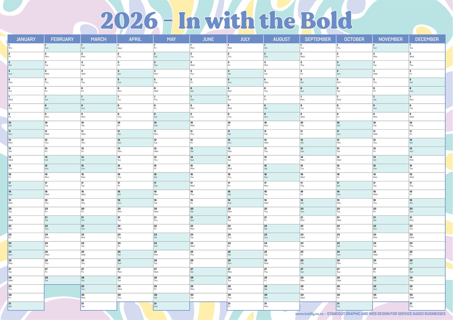 New for 2026! Or you can choose to download the fillable wall planner that highlights your weekends and lets you customise every date with your own plans. **You will need Adobe Reader or Acrobat to do this.**