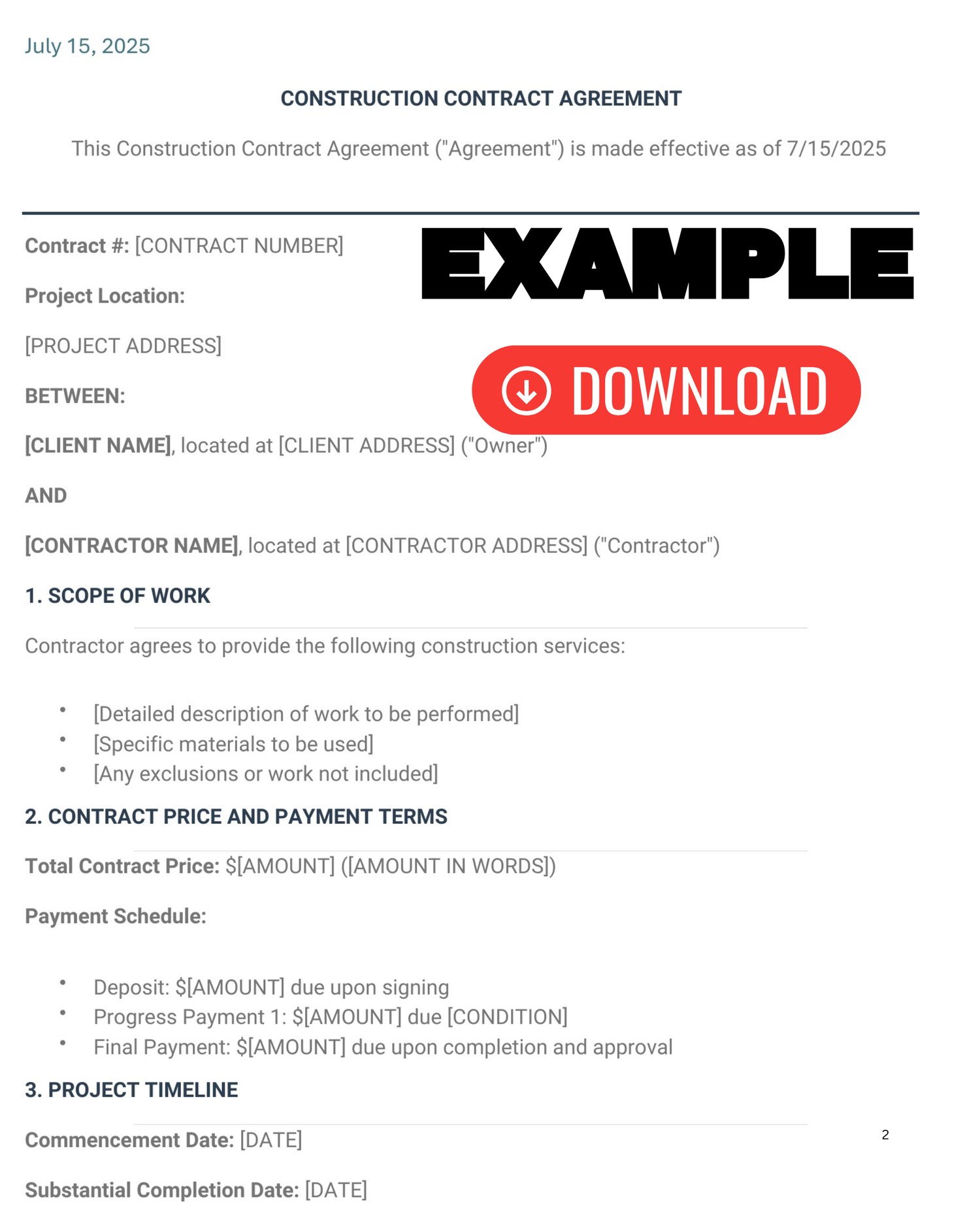 Editable Construction Contract Agreement - Instant Digital Download (PDF)