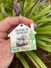 "Home is where you park it" caravan and motorhome house keyring design to fit the blanks from Woodform Crafts.