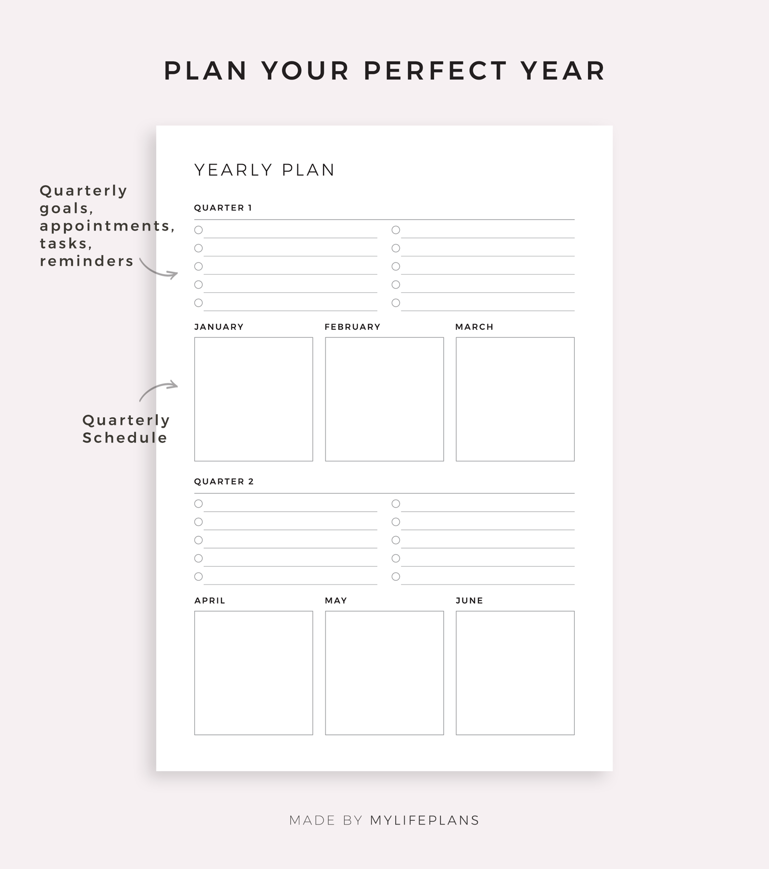This is a printable yearly planner — just download, print, and start using it right away.