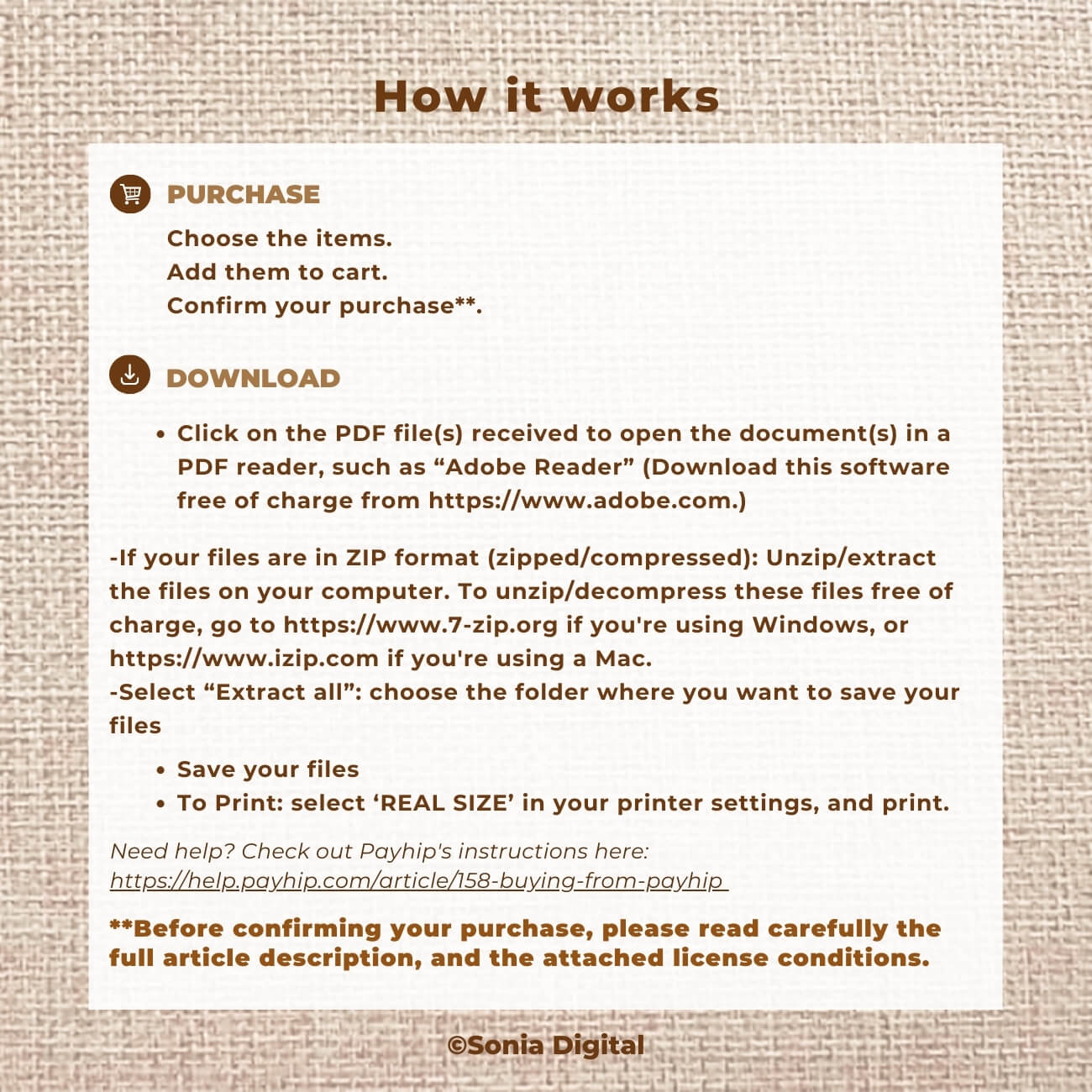- You MAY use my products for your socials, blogs or vlogs ONLY as PRINTED KIT THAT WILL BE CRAFTED. Please credit my shop (eg. Sonia Digital by Sonia Ribeiro on Payhip).