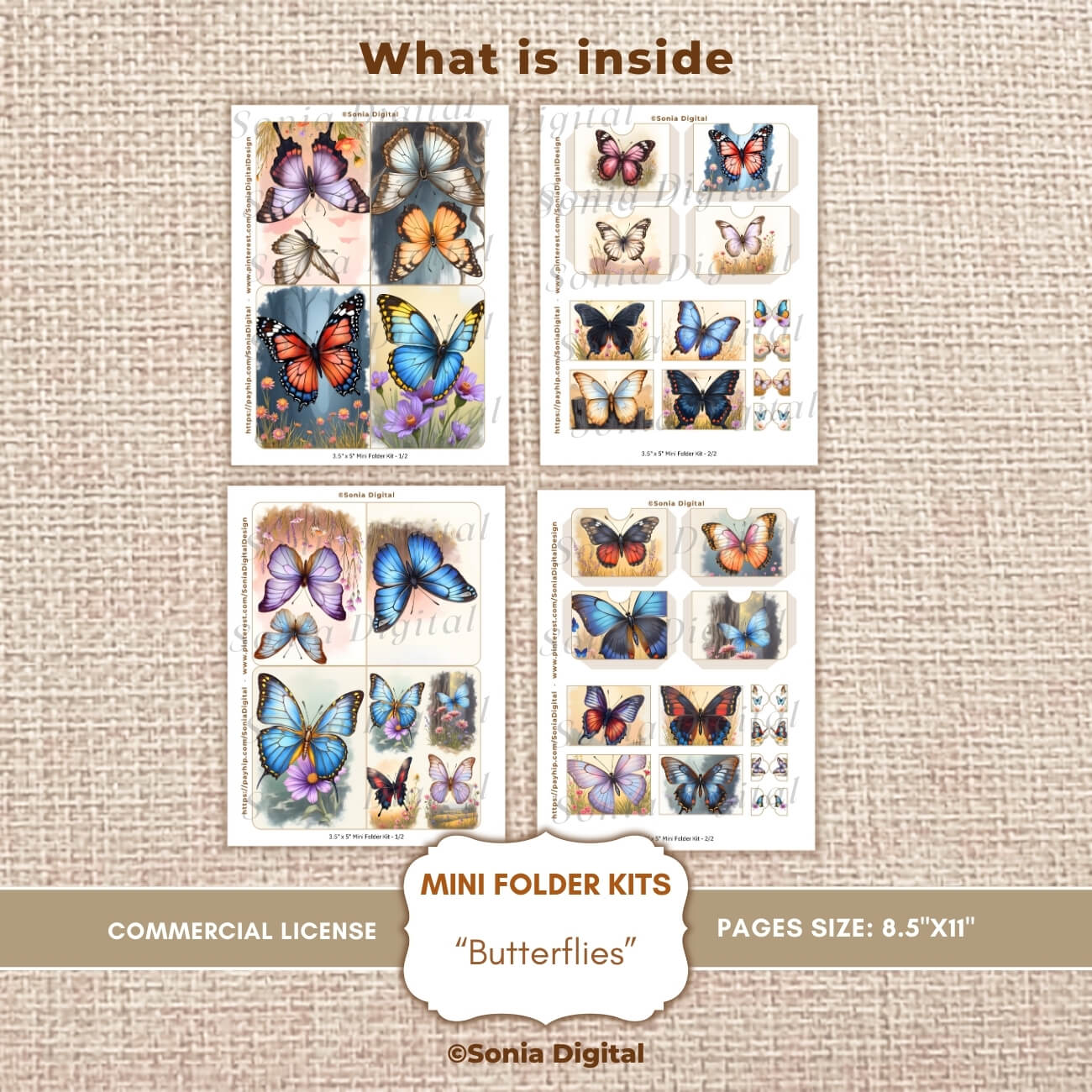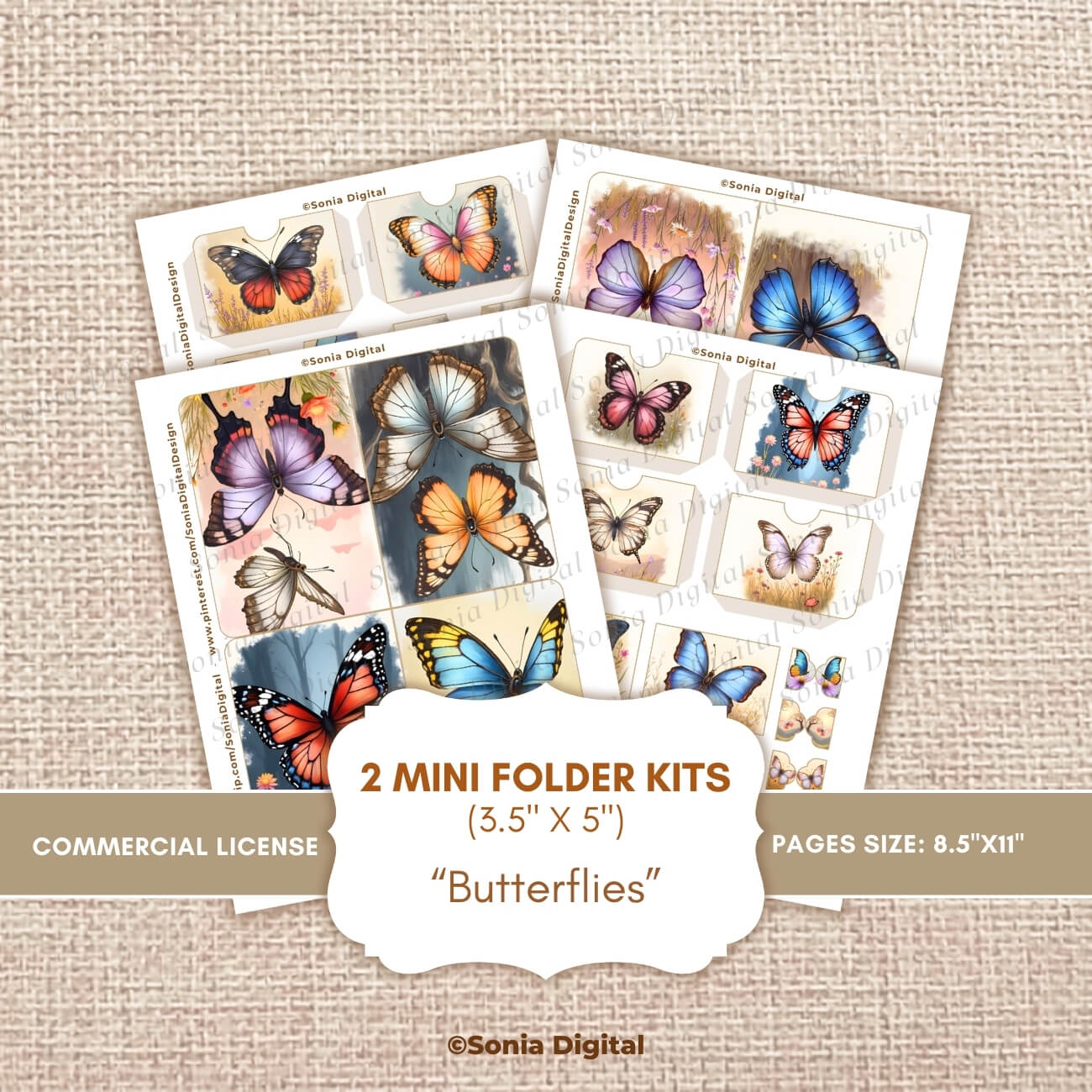🔸4 printable pages containing 2 Mini Folder Kits (3.5”x5”), “Butterflies” Collection. Pages are Letter size (8.5” x 11”). All pages are sold watermark-free. Commercial use license included*.