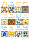 Thank you Flower Stickers, Folk Art Florals, JPG & PDF Formats, 2 Sticker Sizes