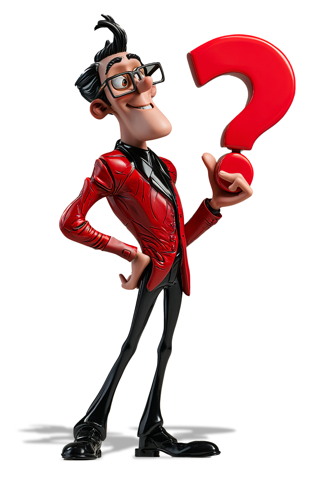 Add a visual design of questions and solutions with this 3D illustration clipart. This illustration features a slick-dressed man holding a large red question mark, encapsulating the essence of pondering a problem or contemplating a solution. The powerful imagery sparks curiosity and engagement, making it an ideal representation for various scenarios in your projects.