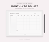 Monthly To Do List Planner, Landscape, Compatible with Remarkable, Supernote, Kindle, Boox, Kobo