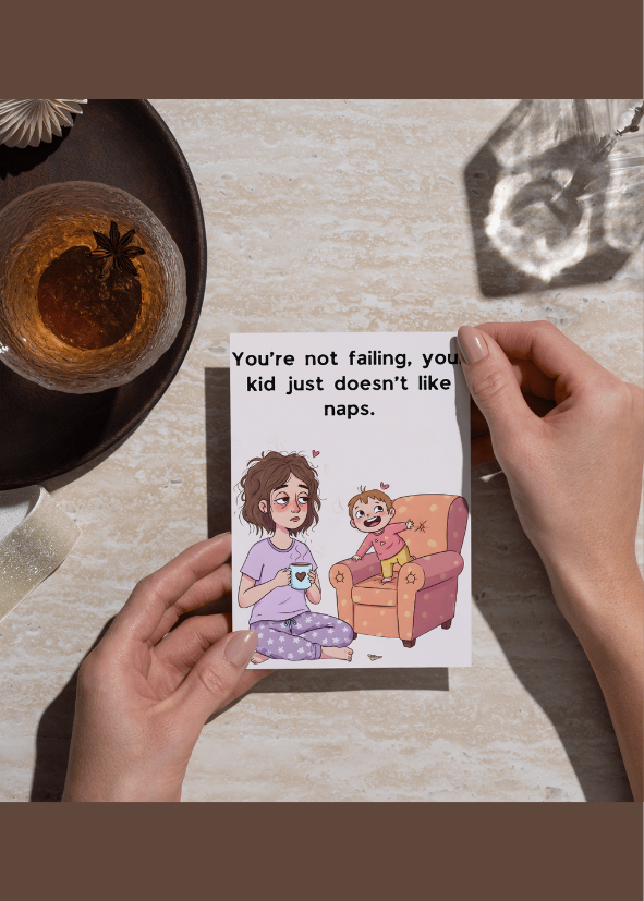 Funny Encouragement Card for Moms – “You’re Not Failing, Your Kid Just Doesn’t Like Naps” – Printable Mom Life Humor Card