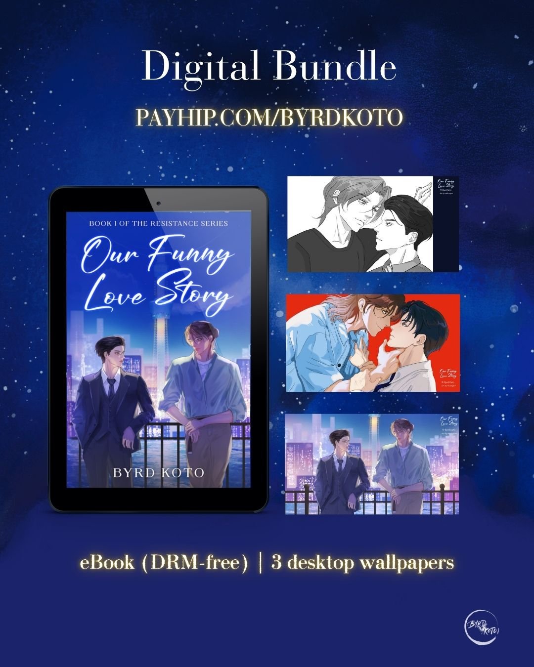 Own your digital copy of Byrd Koto's debut novel, a BL romantic literary mystery with heated banter and hidden layers! The digital version includes six original illustrations from cover artist xiehuajun.