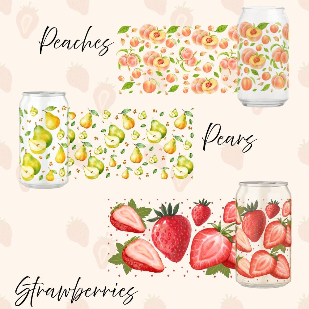 ❤️ 3 Unique Designs: Featuring fresh fruit illustrations (Strawberry, Peaches, Pears).