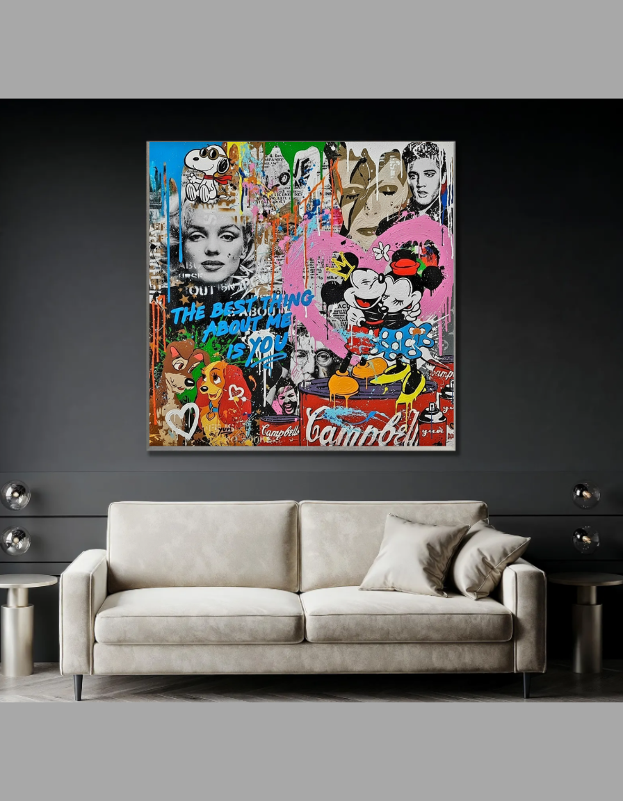 Marilyn Monroe & Mickey Mouse Pop Art Graffiti Collage - Celebrity & Cartoon Urban Wall Decor PNG