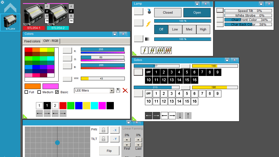 • Automáticos de RGB, con velocidad (Panel de Gobos).