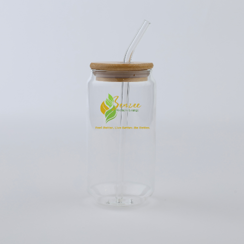 16oz glass cup with bamboo lid with glass straw. Handwash only!!!