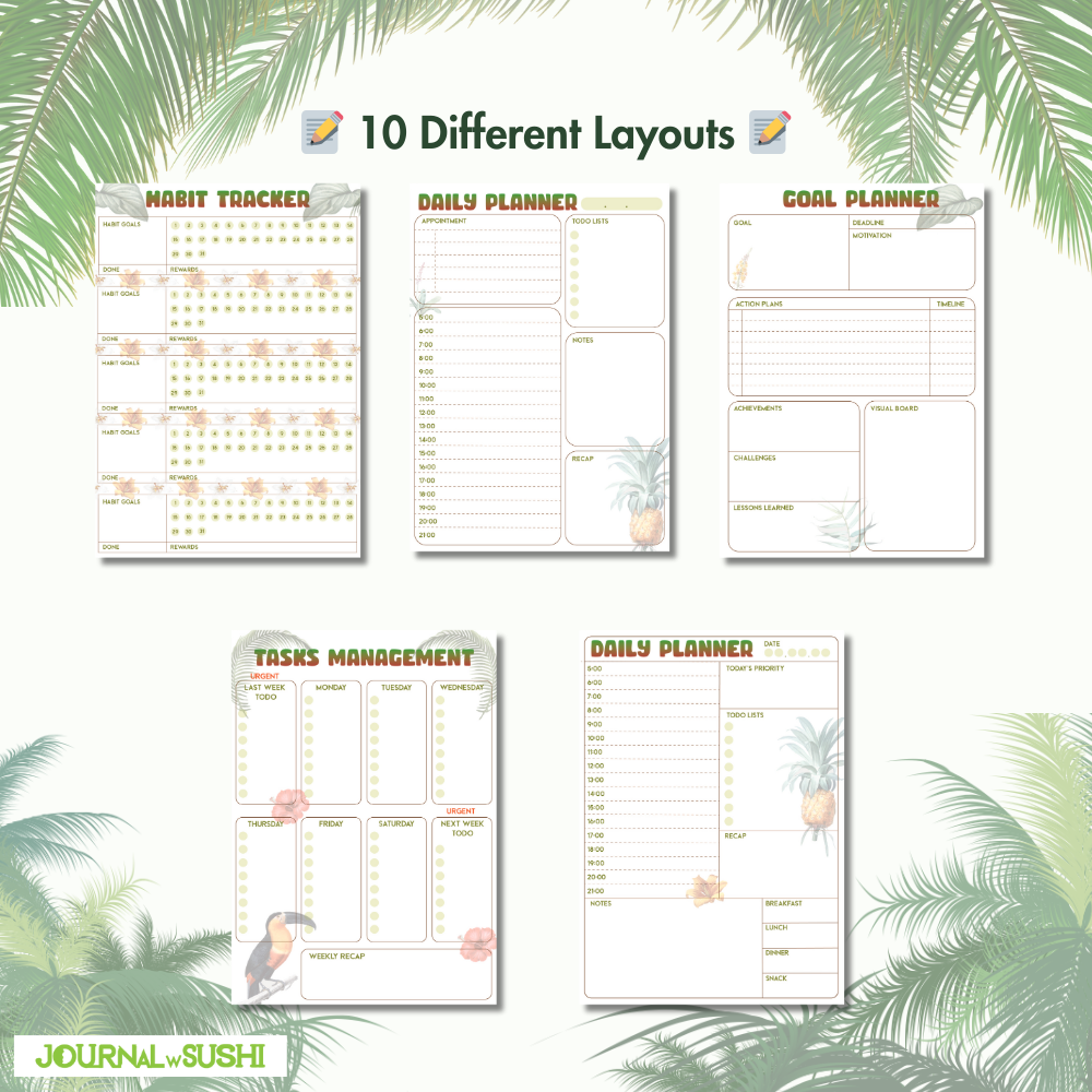Versatile Layouts: With 10 different layouts, you have the ideal template for every aspect of your planning and productivity needs.