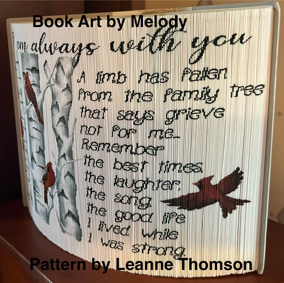 This pattern is based on a 23 cm book (approx). Your book will need at least 591 pages. All books are tested , we believe we should show them completed and not super impose images on the books. If requiring a different height in the pattern, please contact us. Some different techniques are used to show what can be done with the pattern, depends on your level of expertise and knowledge as to how it comes out.