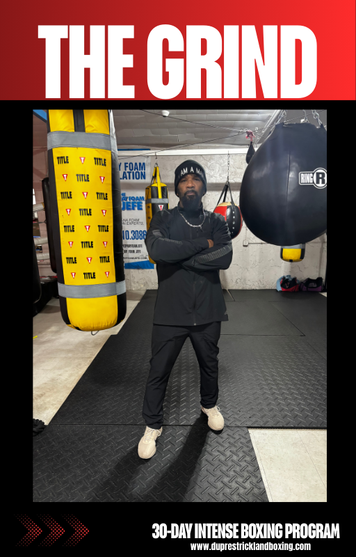 This isn’t your average fitness plan. The Grind is fast, focused, and unapologetically tough. You’ll sweat through explosive rounds of power drills, speed training, agility and footwork sessions, dynamic combos, and focused ab burners. By the end, you won’t just look like a fighter — you’ll move, think, and train like one too.