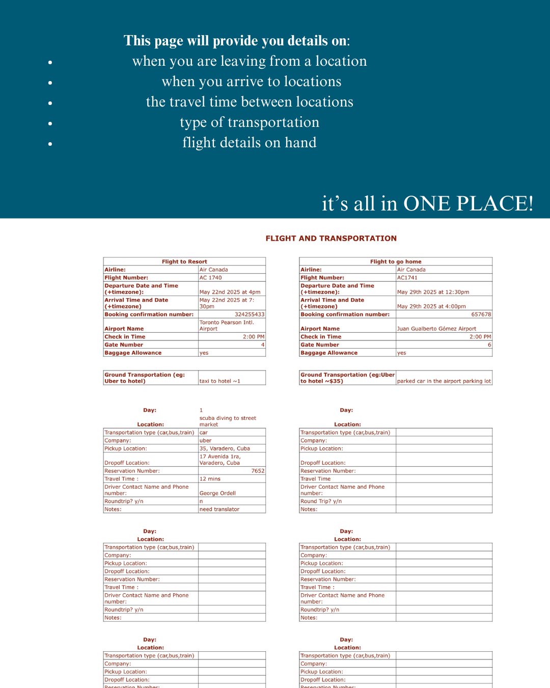 Transportation & Flights – Keep all your on-ground and off ground details all in one place