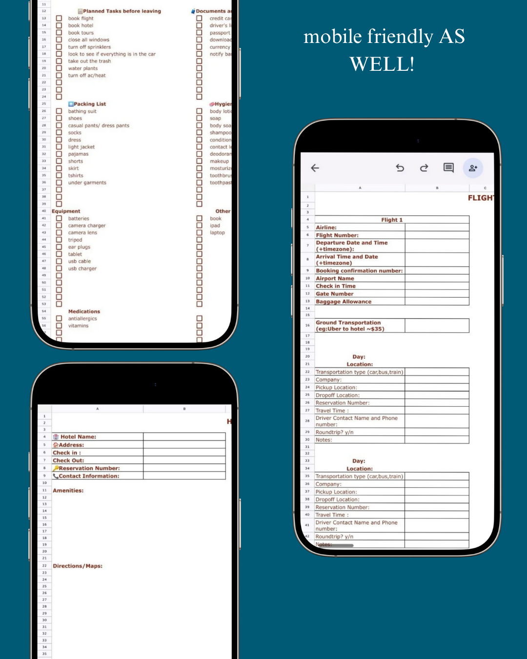Say goodbye to last-minute stress and forgotton trip item essentials! Printable Travel Planner Organizer is your ultimate tool for planning a smooth, hassle-free trip. While this document is printable, it is also very mobile-friendly. This planner helps you organize every detail before you go, so you can focus on making memories instead of scrambling for plans.