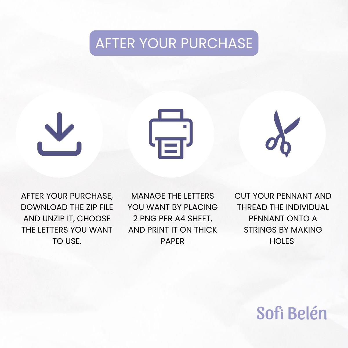 High-quality digital pennants ready to print, beautiful designs to decorate your parties.🎉