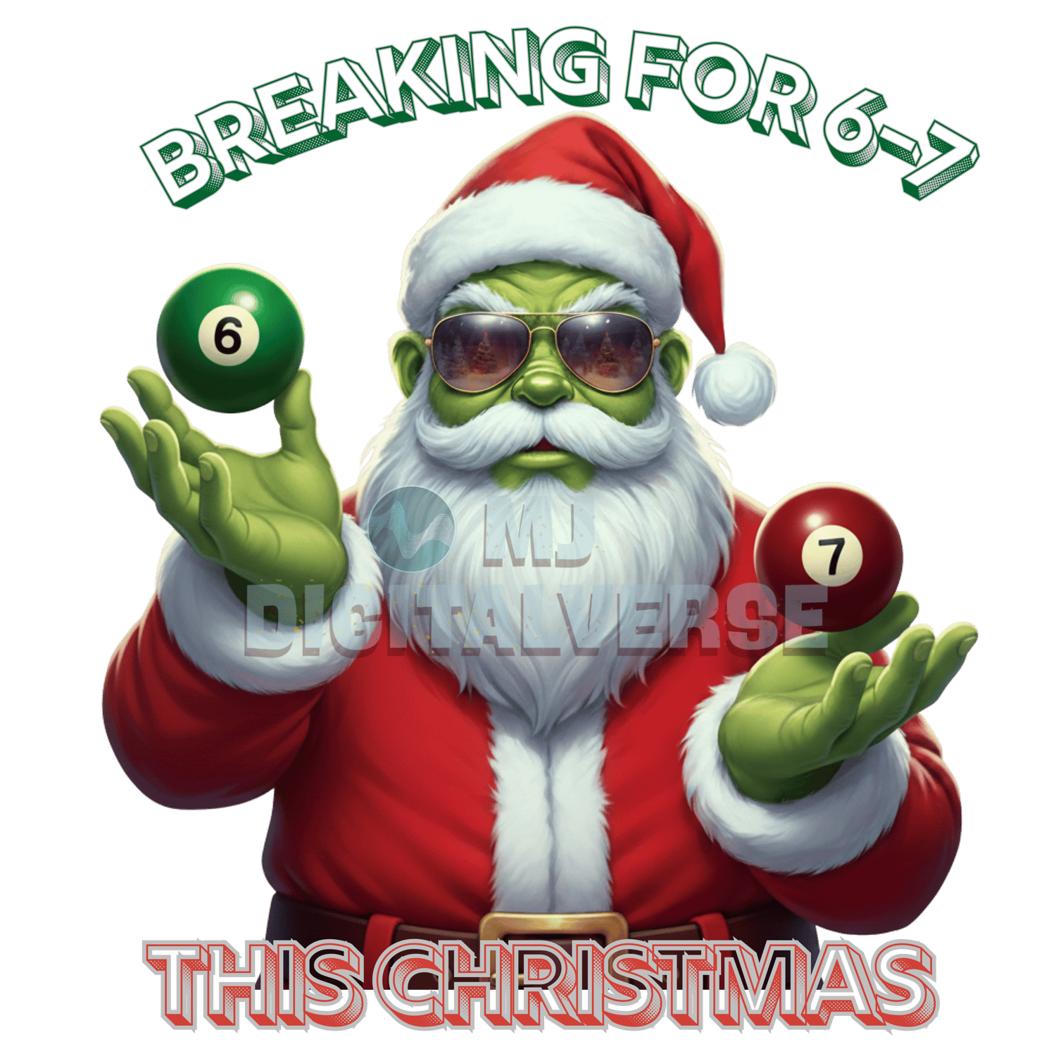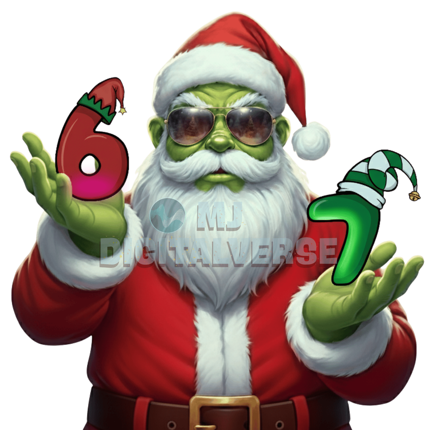 - A fantastic mix of our popular "Grinch Santa" (with 6 & 7 motifs and "This Christmas Gonna Be 67" text) and the dynamic "Santa's on 67 Mode!" designs.