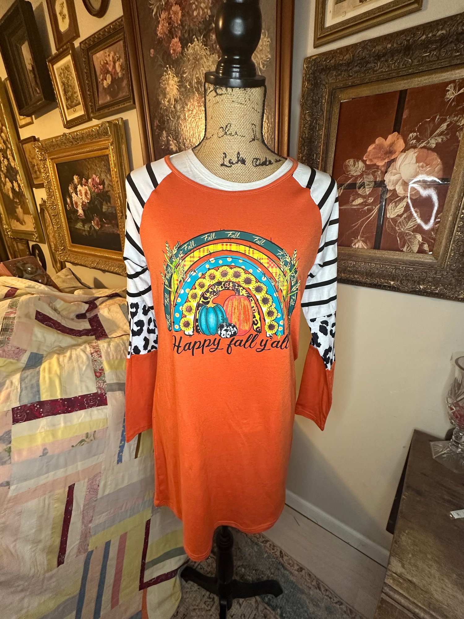 Happy Fall Y’all Graphic Tunic – Pumpkin & Sunflower Print-size S/M